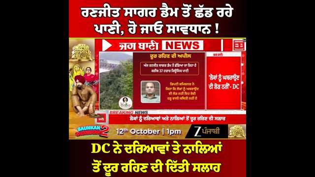 ਰਣਜੀਤ ਸਾਗਰ ਡੈਮ ਤੋਂ ਛੱਡ ਰਹੇ ਪਾਣੀ, ਹੋ ਜਾਓ ਸਾਵਧਾਨ ! DC ਨੇ ਦਰਿਆਵਾਂ ਤੇ ਨਾਲਿਆਂ ਤੋਂ ਦੂਰ ਰਹਿਣ ਦੀ ਦਿੱਤੀ ਸਲਾਹ