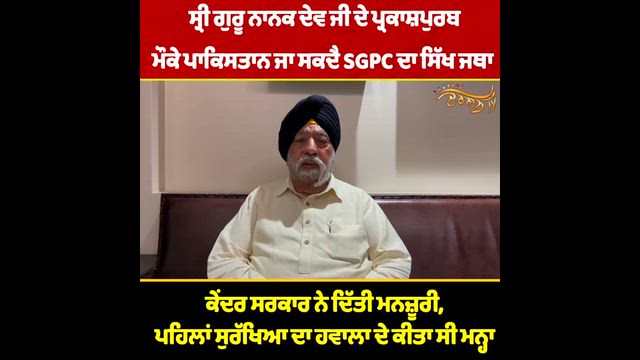 ਖੁਸ਼ਖ਼ਬਰੀ! Gurur Nanak Dev Ji ਦੇ ਪ੍ਰਕਾਸ਼ਪੁਰਬ ਮੌਕੇ Pakistan ਜਾਵੇਗਾ ਸਿੱਖ ਜਥਾ, ਕੇਂਦਰ ਨੇ SGPC ਨੂੰ ਦਿੱਤੀ ਮਨਜ਼ੂਰੀ