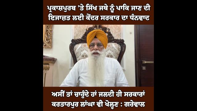 ਪ੍ਰਕਾਸ਼ਪੁਰਬ ’ਤੇ ਸਿੱਖ ਜਥੇ ਨੂੰ ਪਾਕਿ ਗੁਰਧਾਮਾਂ ਦੇ ਦਰਸ਼ਨਾਂ ਦੀ ਮਿਲੀ ਇਜਾਜ਼ਤ ’ਤੇ SGPC ਖੁਸ਼, ਸਰਕਾਰ ਦਾ ਕੀਤਾ ਧੰਨਵਾਦ